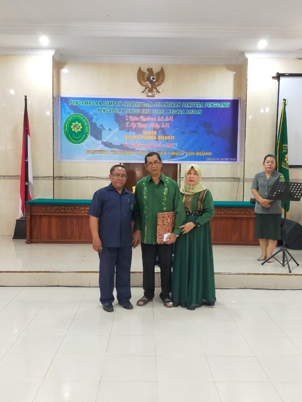 Setelah Bapak Ketua KPTTUN Medan melantik Panitera Pengganti  Ibu Ratna Rosdiana, SE, SH dan Ibu Hj. Risma Nelli, SH  tersebut dan menyampaikan arahan  sambutan pidato beliau, dilanjutkan dengan acara kedua melepas tugas purnabhakti H. Muhammad Irwan, SH., MH yang memasuki usia pensiun.
