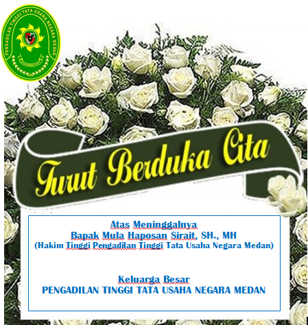 Keluarga Besar Pengadilan Tinggi Tata Usaha Negara Medan mengucapkan turut berduka cita yang sedalam-dalamnya atas meninggalnya Alm. Bapak Mula Haposan Sirait, S.H., M.H. pada Hari Kamis, 5 November 2020. Bahwa pada hari kamis, 5 November 2020 Alm Bapak Mula Haposan Sirait, S.H., M.H sebagai Hakim anggota Majelis yang memeriksa Sengketa TUN Pemilihan (PILKADA) No 6/G/Pilkada/2020/PTTUN-MDN di Ruang sidang utama Pengadilan Tinggi TUN Medan Jl. Peratun – Medan Estate.