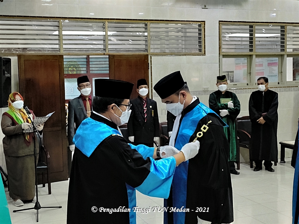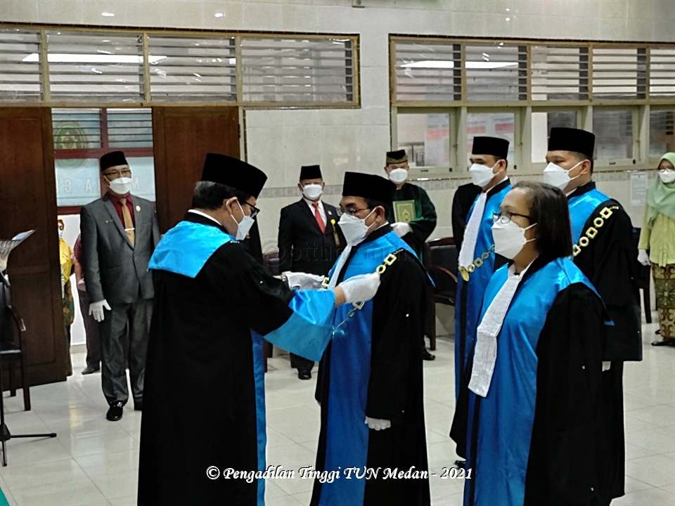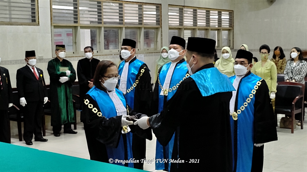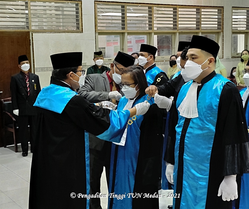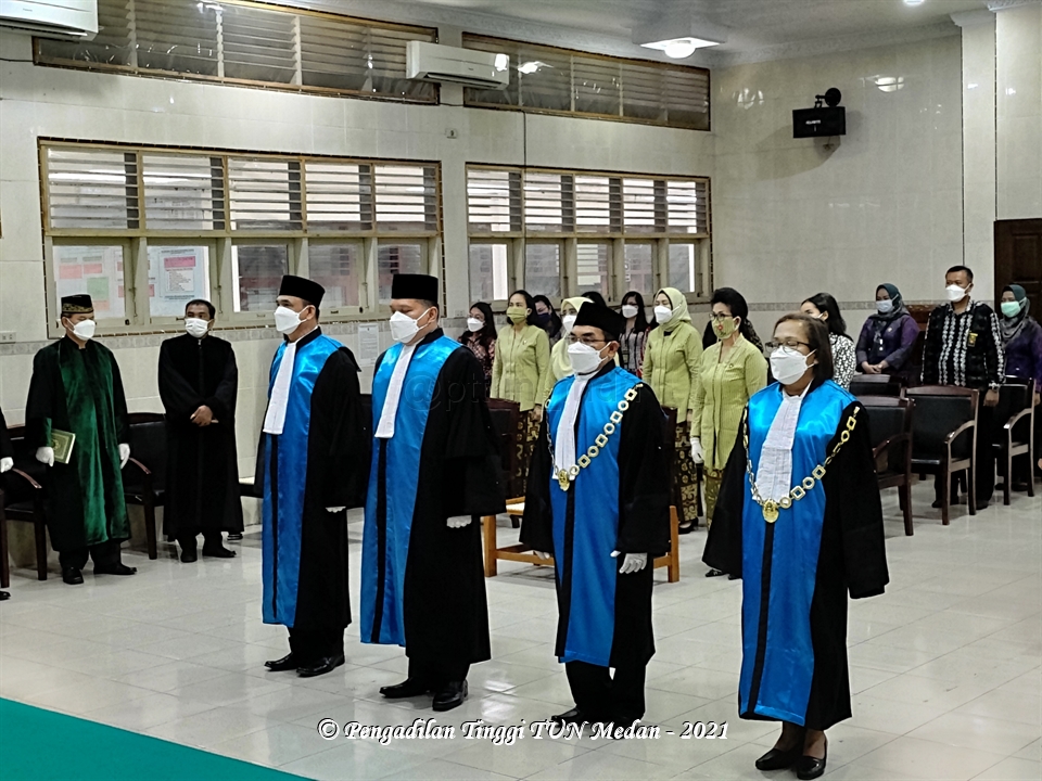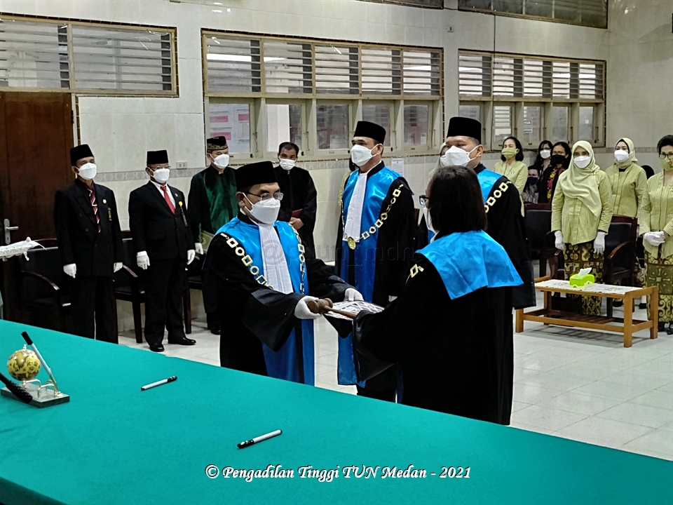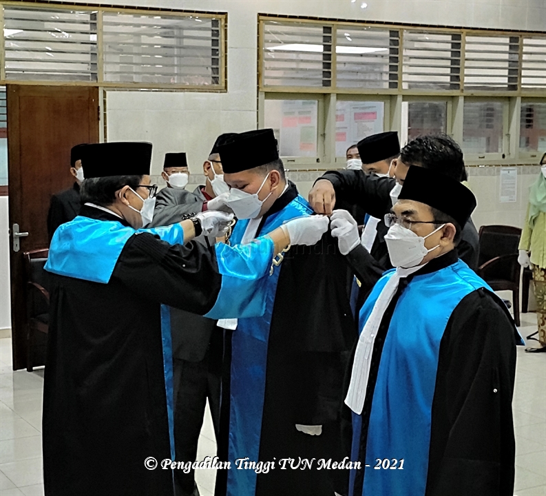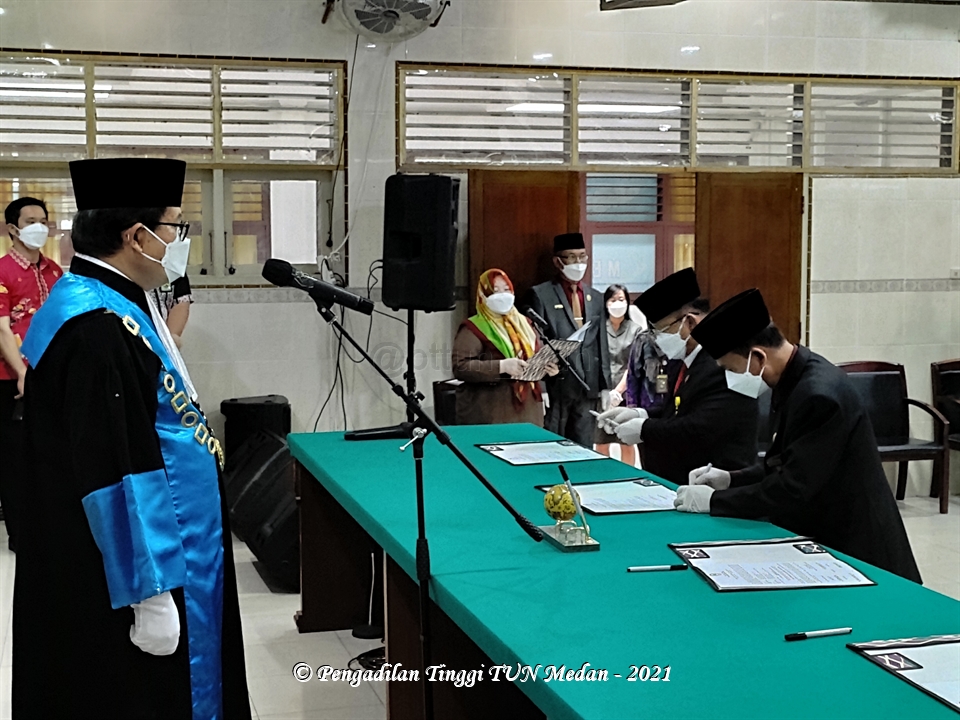Pada Hari Jum’at, 20 Agustus 2021, Pengadilan Tinggi Tata Usaha Negara Medan melaksanakan kegiatan Pengambilan Sumpah Jabatan & Pelantikan Ketua PTUN pada Wilayah Hukum Pengadilan Tinggi TUN Medan. Kegiatan tersebut dipimpin oleh Plt. Ketua Pengadilan Tinggi TUN Medan, Bapak Dr. Arifin Marpaung, SH., M.Hum., dan dihadiri oleh Para Hakim Tinggi, Pejabat Fungsional dan Struktural serta Pegawai ASN dan PPNPN. Acara berlangsung dengan tetap menerapkan Protokol Kesehatan sampai selesai dan diakhiri dengan foto bersama.