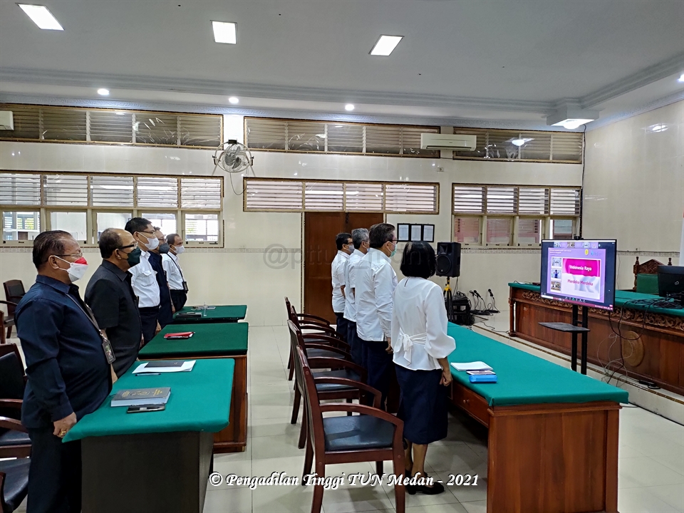 Acara diikuti oleh Ketua Pengadilan Tinggi Tata Usaha Negara Medan, Bapak Dr. Arifin Marpaung, SH., M.Hum., dan dihadiri oleh Wakil Ketua dan para Hakim Tinggi.
