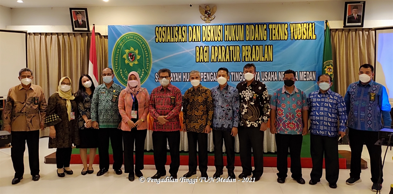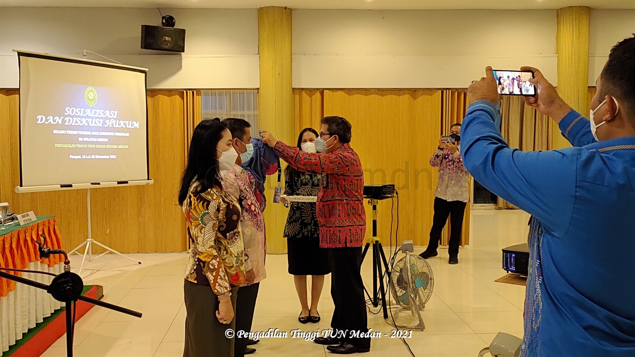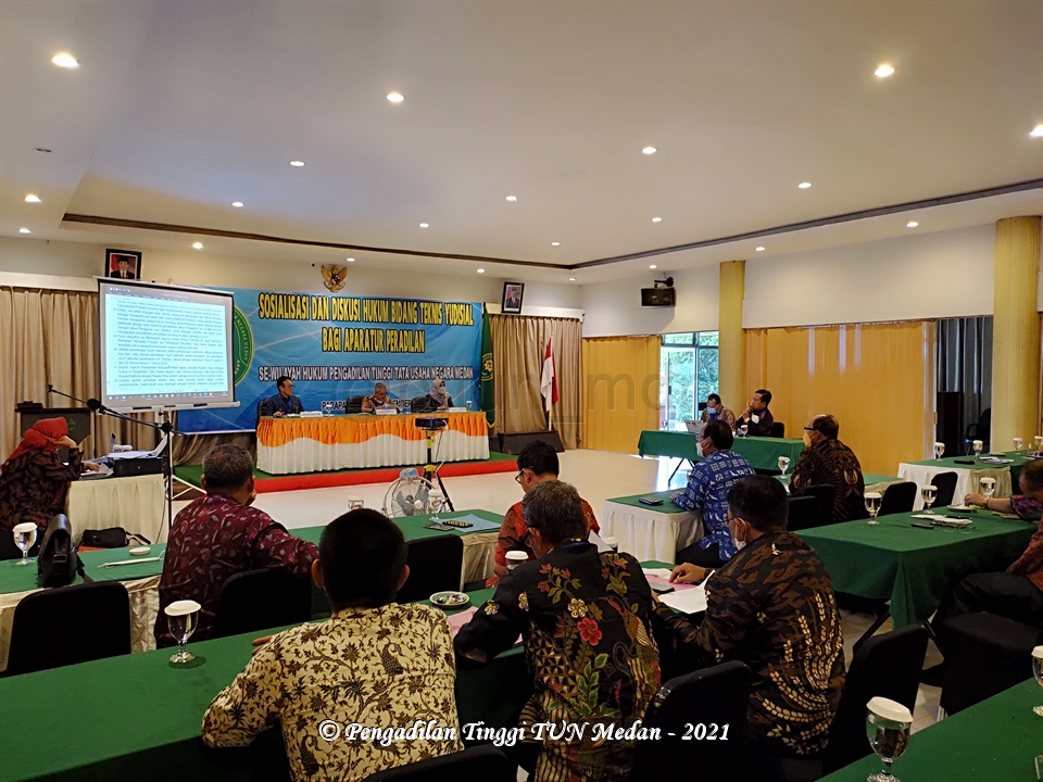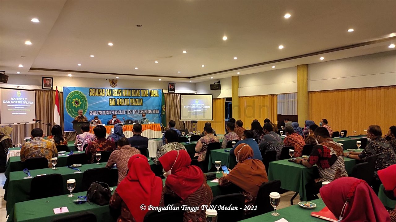 Pengadilan Tinggi Tata Usaha Negara (PTTUN) Medan melaksanakan kegiatan Sosialisasi dan Diskusi Hukum Bidang Teknis Yudisial bagi Aparatur Peradilan Se-wilayah Hukum Pengadilan Tinggi TUN Medan, pada tanggal 18-20 November 2021, bertempat di Aula Hotel Patra Comfort Parapat, Kab. Simalungun, Sumatera Utara.