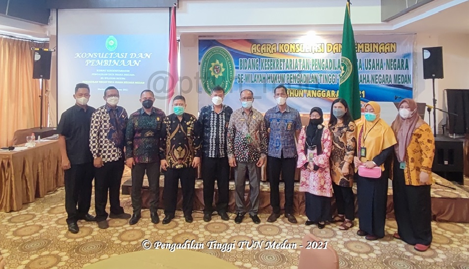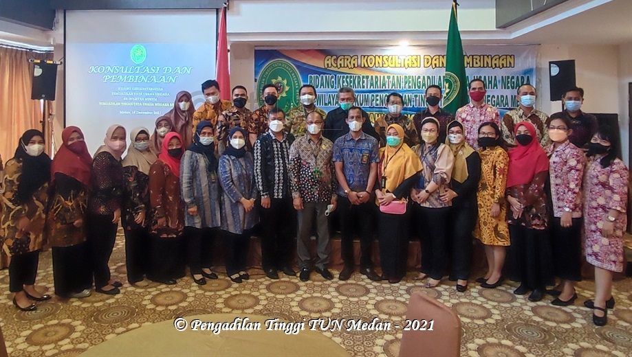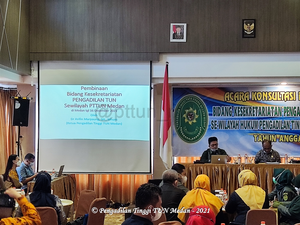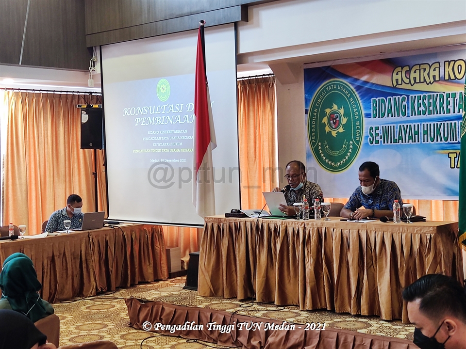 Pengadilan Tinggi Tata Usaha Negara (PTTUN) Medan melaksanakan Acara Konsultasi dan Pembinaan Bidang Kesekretariatan Pengadilan Tata Usaha Negara se-Wilayah Hukum Pengadilan Tinggi Tata Usaha Negara Medan Tahun Anggaran 2021, pada tanggal 15 s.d 17 Desember 2021.
