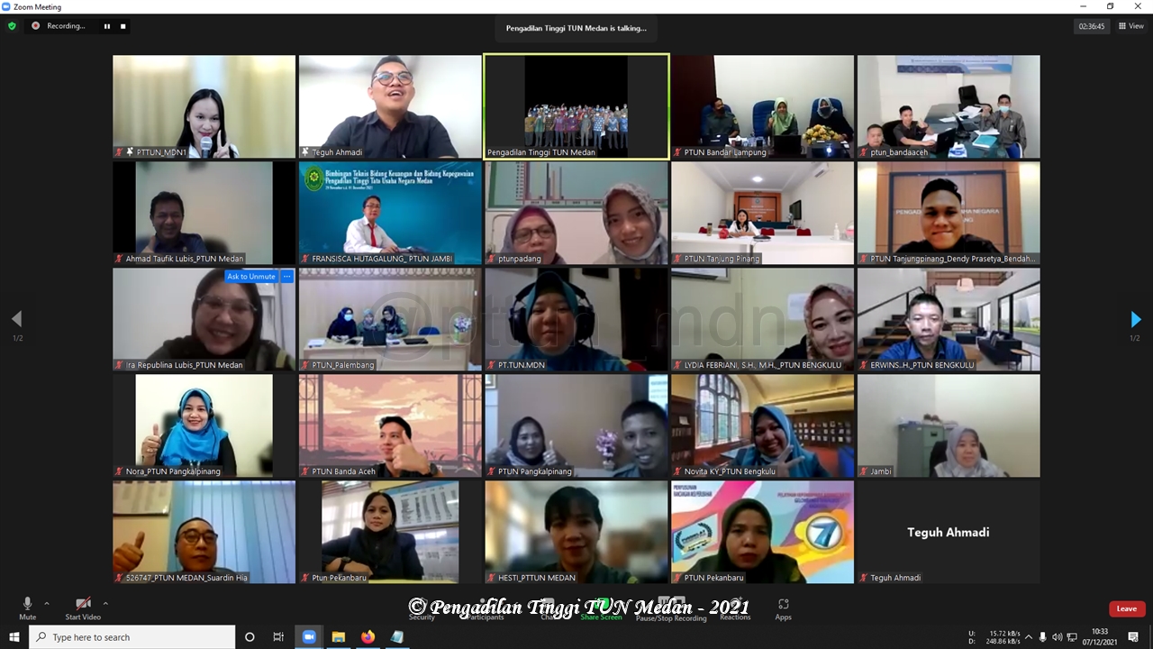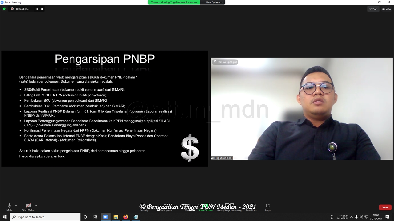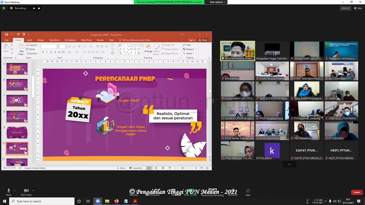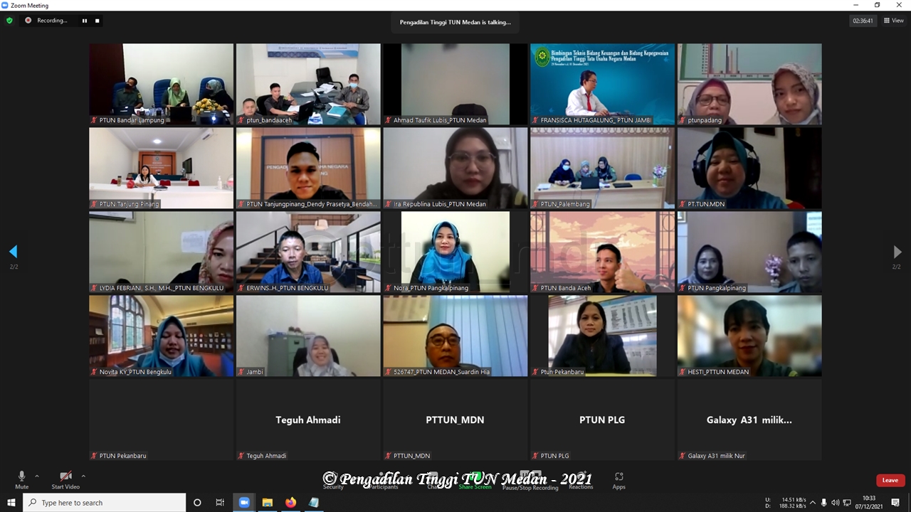 Pada Hari Selasa, 07 Desember 2021, Pengadilan Tinggi Tata Usaha Negara Medan melaksanakan kegiatan Sosialisasi PEnatausahaan dan Petunjuk Teknis PNBP secara virtual melalu Zoom Meeting, bertempat di Pengadilan Tinggi Tata Usaha Negara (PTTUN) Medan, Jl. Peratun Medan Estate, Kec. Percut Sei Tuan, Kab. Deli Serdang.