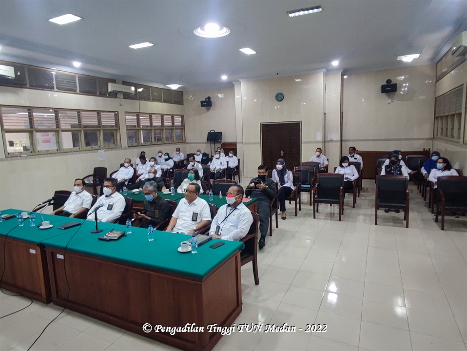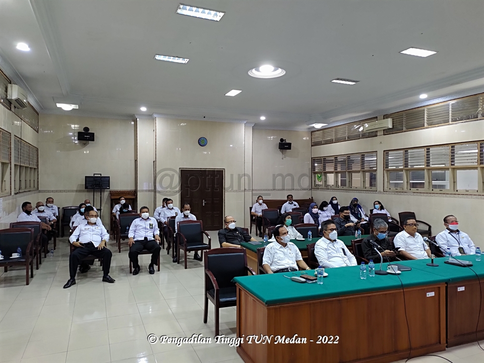 Pada Hari Senin, 24 Januari 2022, Pengadilan Tinggi Tata Usaha Negara Medan mengikuti Kegiatan Pengarahan dan Dialog Warga Peradilan Tata Usaha Negara dengan Pengadilan Pajak secara virtual melalu Zoom Meeting, bertempat di Ruang Sidang Utama Pengadilan Tinggi Tata Usaha Negara (PTTUN) Medan, Jl. Peratun Medan Estate, Kec. Percut Sei Tuan, Kab. Deli Serdang.