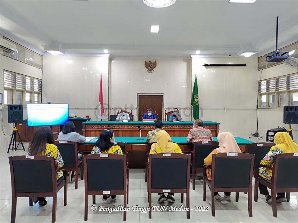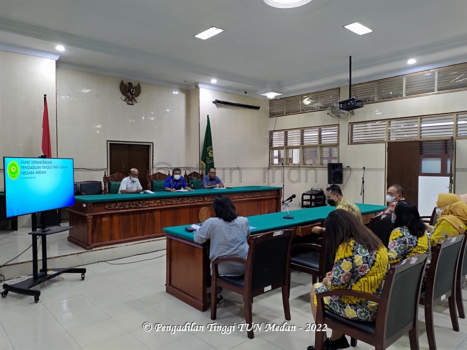 Pada Hari Kamis, tanggal 20 Januari 2022, Pengadilan Tinggi Tata Usaha Negara Medan melaksanakan kegiatan Rapat Internal Bidang Kepaniteraan PTTUN Medan, bertempat di Pengadilan Tinggi Tata Usaha Negara (PTTUN) Medan, Jl. Peratun Medan Estate, Kec. Percut Sei Tuan, Kab. Deli Serdang.