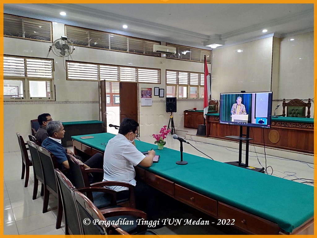 Pada hari Rabu, tanggal 28 September 2022, Pengadilan Tinggi Tata Usaha Negara (PT TUN) Medan mengikuti Diskusi Panel yang diselenggarakan oleh Mahkamah Agung RI secara virtual, bertempat di Ruang Sidang Utama Pengadilan Tinggi Tata Usaha Negara Medan, Jl. Peratun Medan Estate, Kec. Percut Sei Tuan, Kab. Deli Serdang, Provinsi Sumatera Utara. Kegiatan ini diikuti oleh Ketua, Wakil, serta Para Hakim Tinggi di PT TUN Medan.