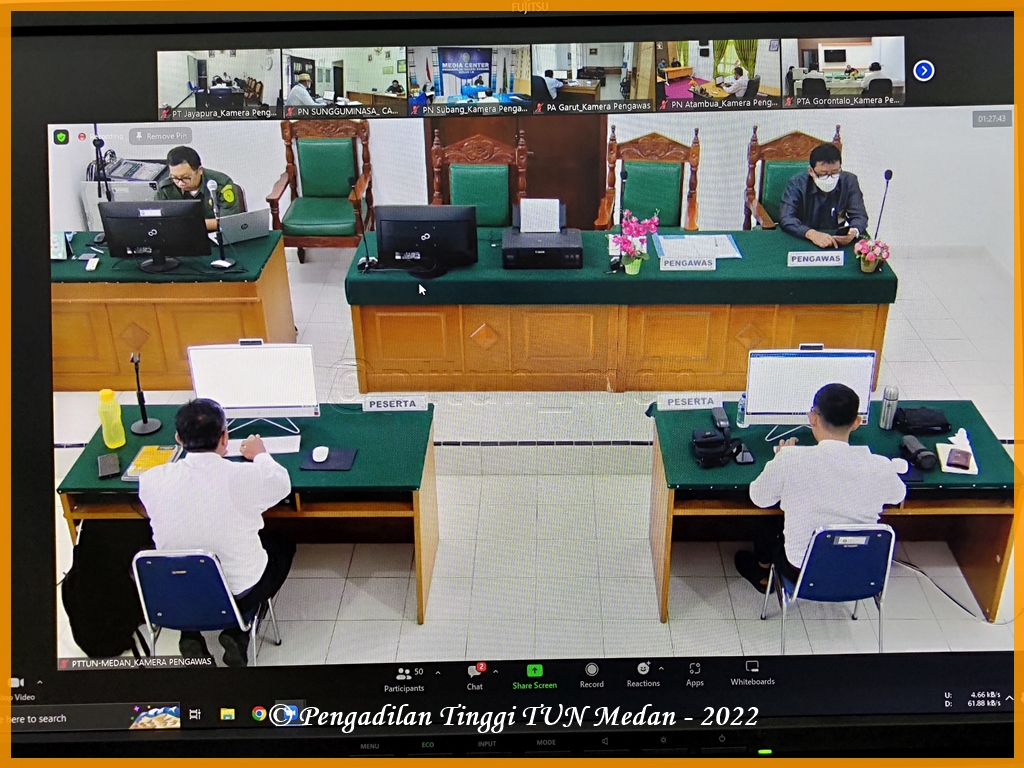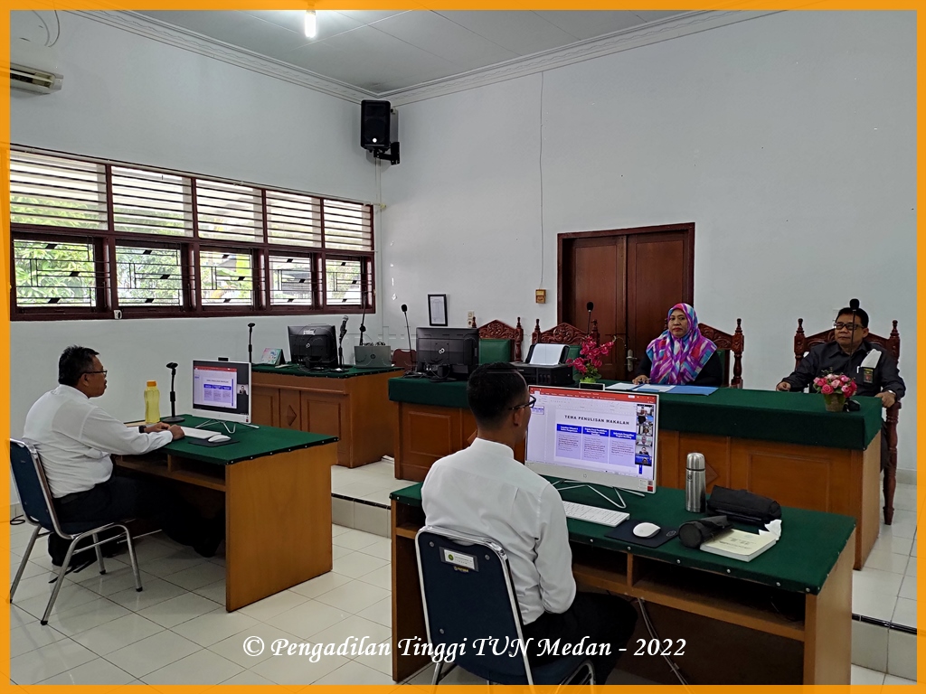 Pada Hari Senin s.d. Kamis, 12-15 September 2022, ASN Pengadilan Tinggi Tata Usaha Negara (PT TUN) Medan mengikuti kegiatan Seleksi Kompetensi Bidang pada Seleksi Jabatan Tinggi Pratama (JPT) Pengadilan pada Mahkamah Agung RI tahun 2022 secara daring, bertempat di Ruang Sidang Online PT TUN Medan, Jalan Peratun Medan Estate, Kec. Percut Sei Tuan, Kab Deli Serdang, Sumatera Utara.