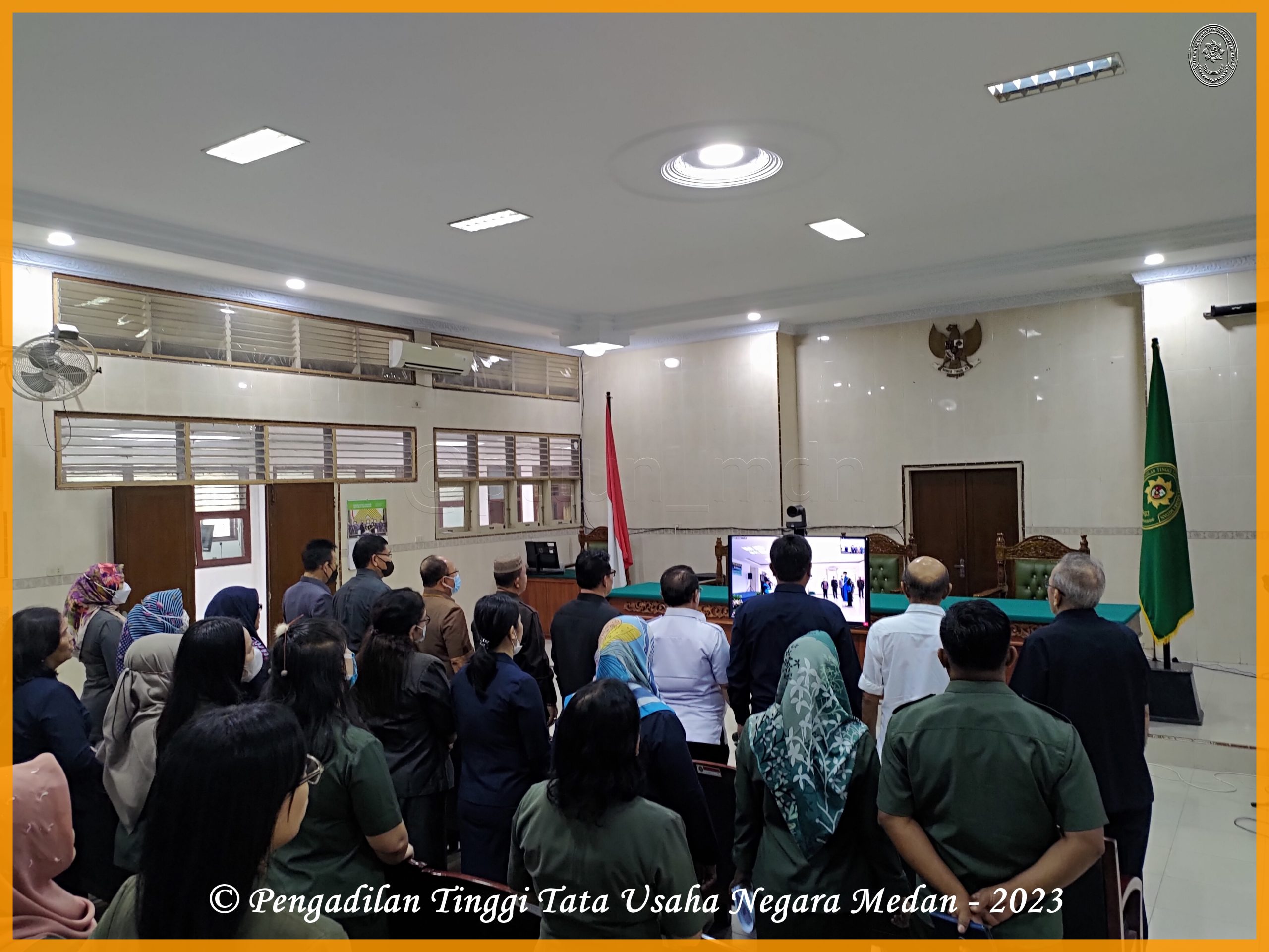 (Deli Serdang, 10/01/2023) Pengadilan Tinggi Tata Usaha Negara (PTTUN) Medan mengikuti acara Pelantikan dan Pengambilan Sumpah Jabatan Wakil Ketua PTTUN Medan secara virtual, bertempat di Ruang Sidang Utama Pengadilan Tinggi Tata Usaha Negara Medan, Jl. Peratun Medan Estate, Kec. Percut Sei Tuan, Kab. Deli Serdang, Sumatera Utara. Acara pelantikan diikuti oleh seluruh Hakim Tinggi, Para Pejabat Struktural dan Fungsional, dan Para Staff serta PPNPN di lingkungan PTTUN Medan.