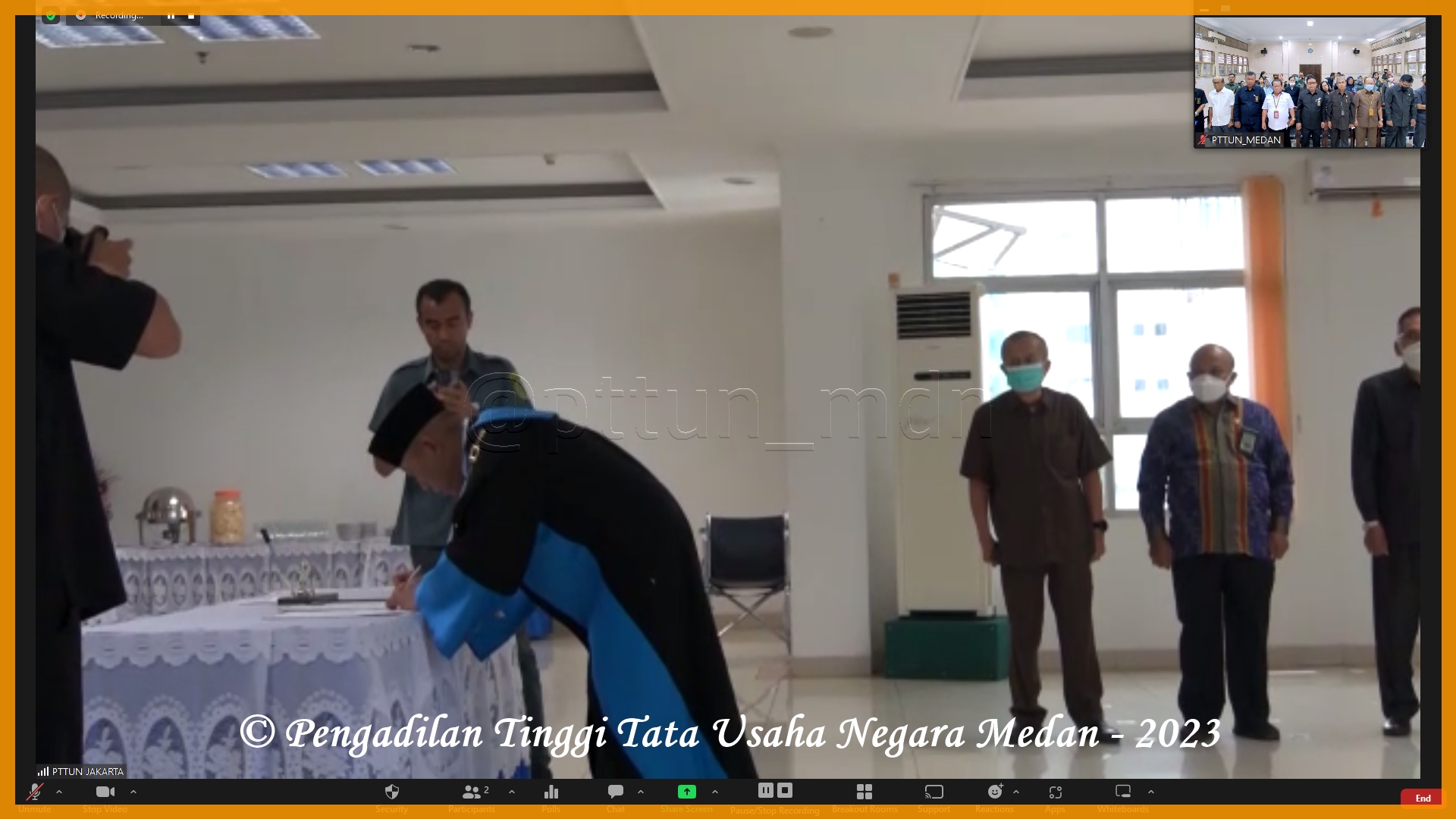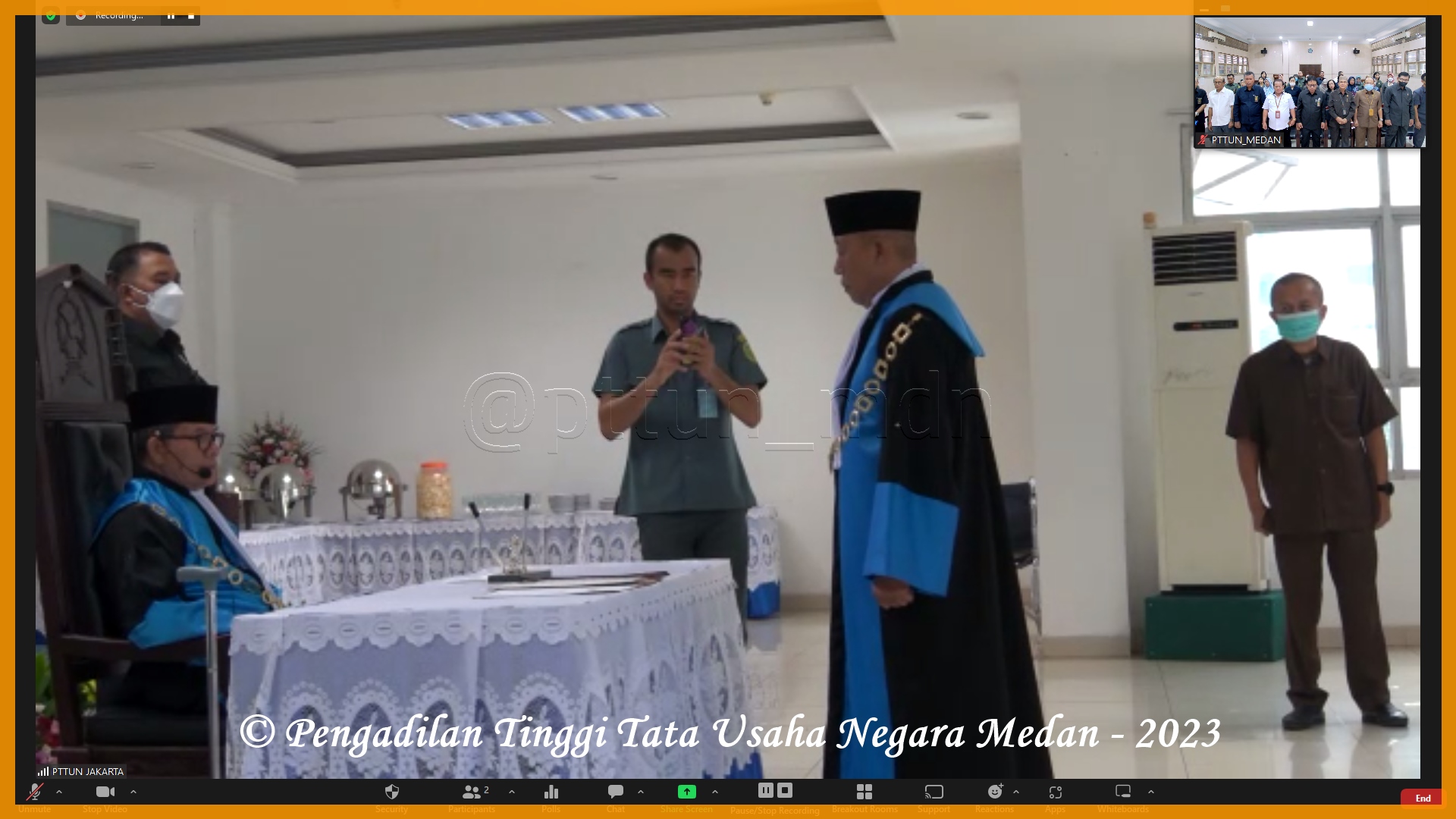 Acara Pelantikan ini dilaksanakan di PTTUN Jakarta, mengingat kondisi Ketua PTTUN Medan yang sedang pemulihan pasca sakit, dan di ikuti secara virtual oleh Para ASN di PTTUN Medan.[YH/TIK]