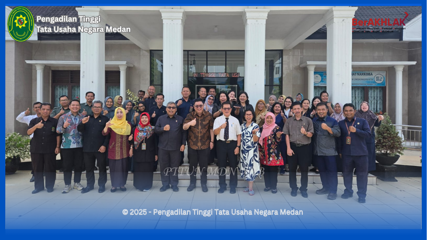 (Deli Serdang, 06/08/2025) Hakim Agung Mahkamah Agung Republik Indonesia YM. Dr. H. Yodi Martono Wahyunadi, S.H., M.H., beserta rombongan berkunjung ke Pengadilan Tinggi Tata Usaha Negara Medan disambut hangat oleh Ketua Pengadilan Tinggi Tata Usaha Negara Medan Bapak Dr. Arifin Marpaung, S.H., M.Hum., beserta Hakim Tinggi, Kepaniteraan,  Kesekretariatan dan Seluruh ASN Pengadilan Tinggi Tata Usaha Negara Medan pada hari Rabu (06/08/2025). (YH/TIK)