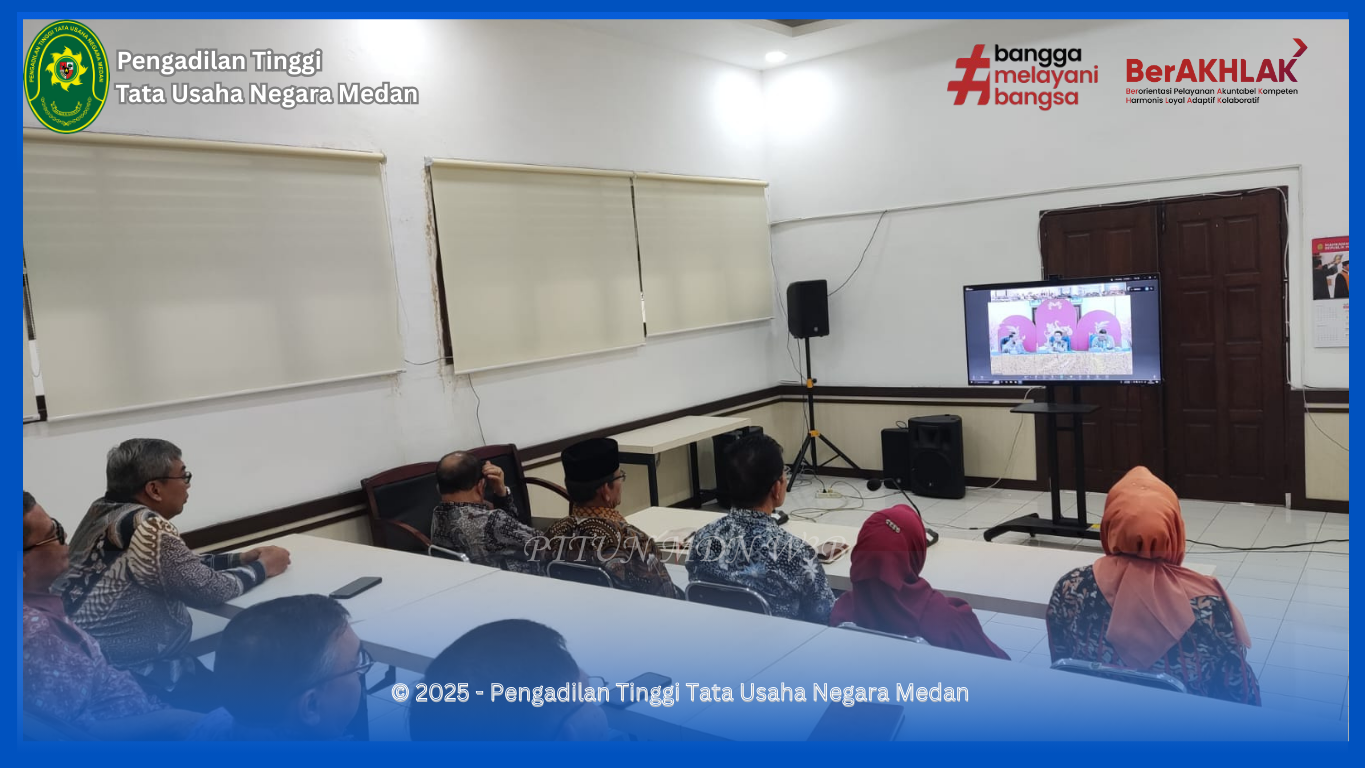 (Deli Serdang, 14/08/2025) – Ketua Pengadilan Tinggi Tata Usaha Negara Medan beserta Wakil Ketua, dan seluruh Hakim Tinggi Pengadilan Tinggi Tata Usaha Negara Medan mengikuti Pembinaan oleh Ketua Muda Tata Usaha Negara Mahkamah Agung RI secara daring melalui aplikasi Zoom Meeting di Ruang Command Center pada hari Kamis, 14 Agustus 2025.