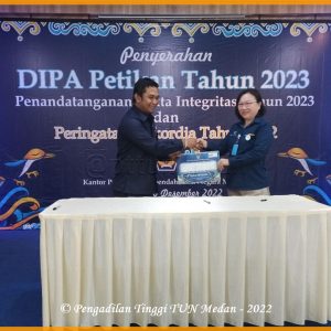 Berita PTTUN Refleksi Kinerja Mahkamah Agung RI Tahun 20223 January 2023Kunjungan Kerja KPU Provinsi Bangka Belitung Ke PTTUN Medan23 December 2022Audiensi Pembukaan Moratorium Pembangunan Gedung Kantor PTTUN Medan22 December 2022Monitoring dan Evaluasi Data Perkara Tahun 2022 Se-Wilkum PTTUN Medan20 December 2022PTTUN Medan Menerima DIPA Petikan Tahun Anggaran 202320 December 2022Rapat Virtual Pembahasan Hasil Pengembangan Aplikasi SIPP dan e-Court Lingkungan Peradilan Tata Usaha Negara14 December 2022Bimbingan Teknis Bidang Keuangan dan Barang Milik Negara Se-Wilkum PTTUN Medan14 December 2022Bimbingan Teknis Bidang Kepegawaian Se-Wilkum PTTUN Medan9 December 2022PTTUN Medan Mengikuti Kegiatan Peresmian Operasional 13 Pengadilan Tingkat Banding Baru dan 51 Gedung Pengadilan Baru6 December 2022«‹515253545556575859›»